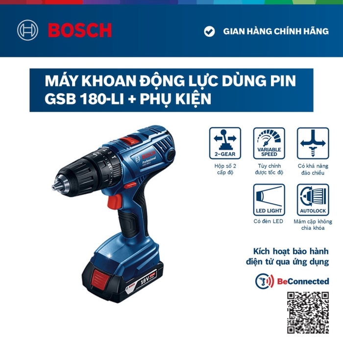 Máy khoan vặn vít động lực dùng pin cầm tay Bosch GSB 180-LI + phụ kiện MỚI